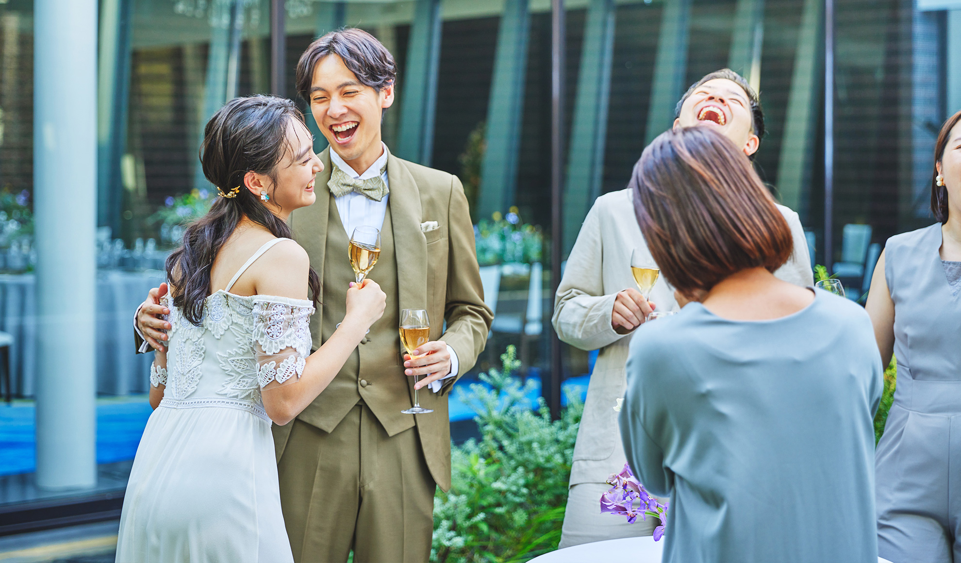 水と緑につつまれたガーデンからの入場演出はゲストへのサプライズ。